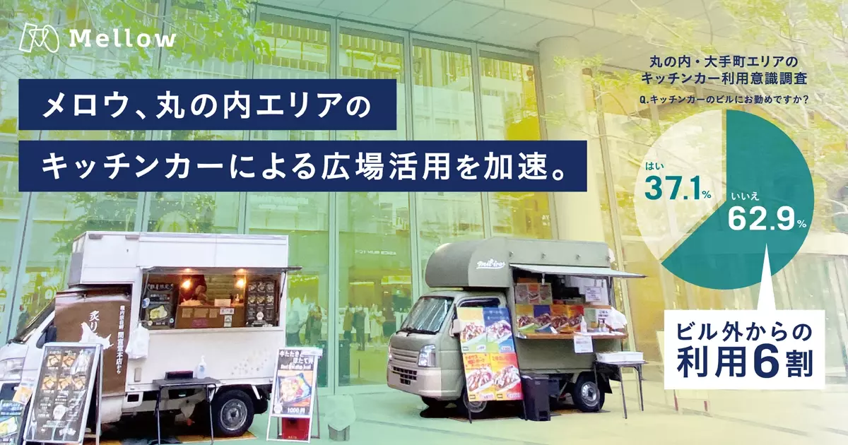日本最大級のモビリティビジネス・プラットフォーム「SHOP STOP」を展開する株式会社Mellow (本社:東京都千代田区 代表取締役社長:石澤 正芳、以下「メロウ」)は、三菱地所グループが管理・運営を行う「丸ビル」1階マルキューブ、「大手町パークビル」外構部におけるキッチンカー導入支援を進めておりますが、このたび広場を活用するお客様のアンケートを実施しましたのでお知らせします。