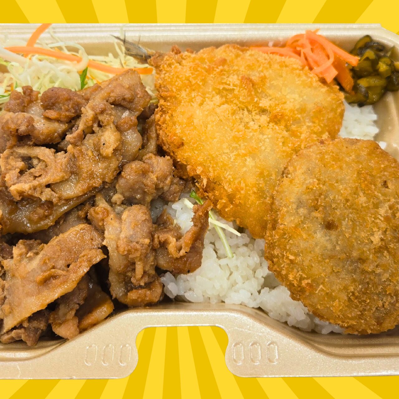 全部のせランチ(しょうが焼き、白身魚フライ、メンチカツ)