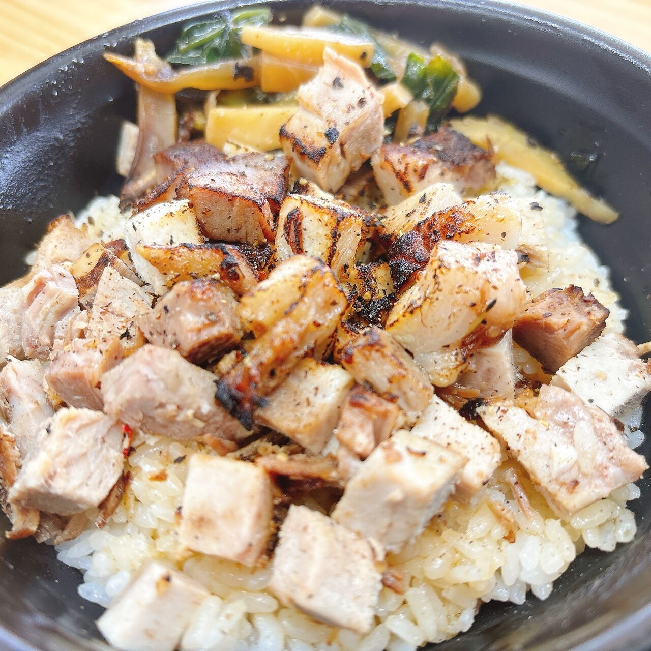 4時間以上も煮込み味がしみしみのチャーシューをサイコロ状にカットしているのでお好みで副菜のお野菜と混ぜて食べてみるのも美味しいです!