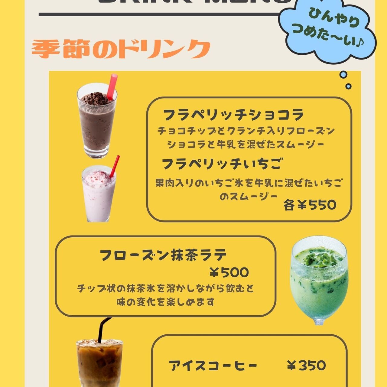 フローズンドリンクや自家製レモネード、かき氷など夏におすすめのドリンクです。