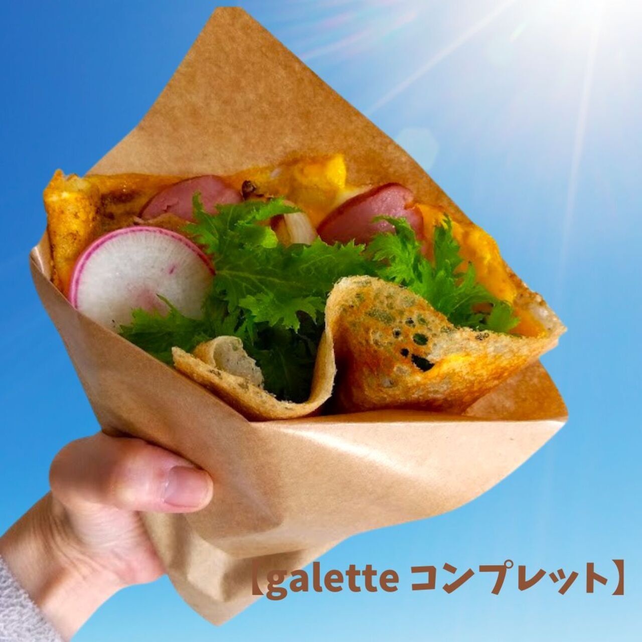 信州産そば粉100%を使用したフランスの郷土料理を食べやすいワンハンドでお出しします。ハム・チーズ・卵・グリル野菜・サラダの入った王道のガレット。
