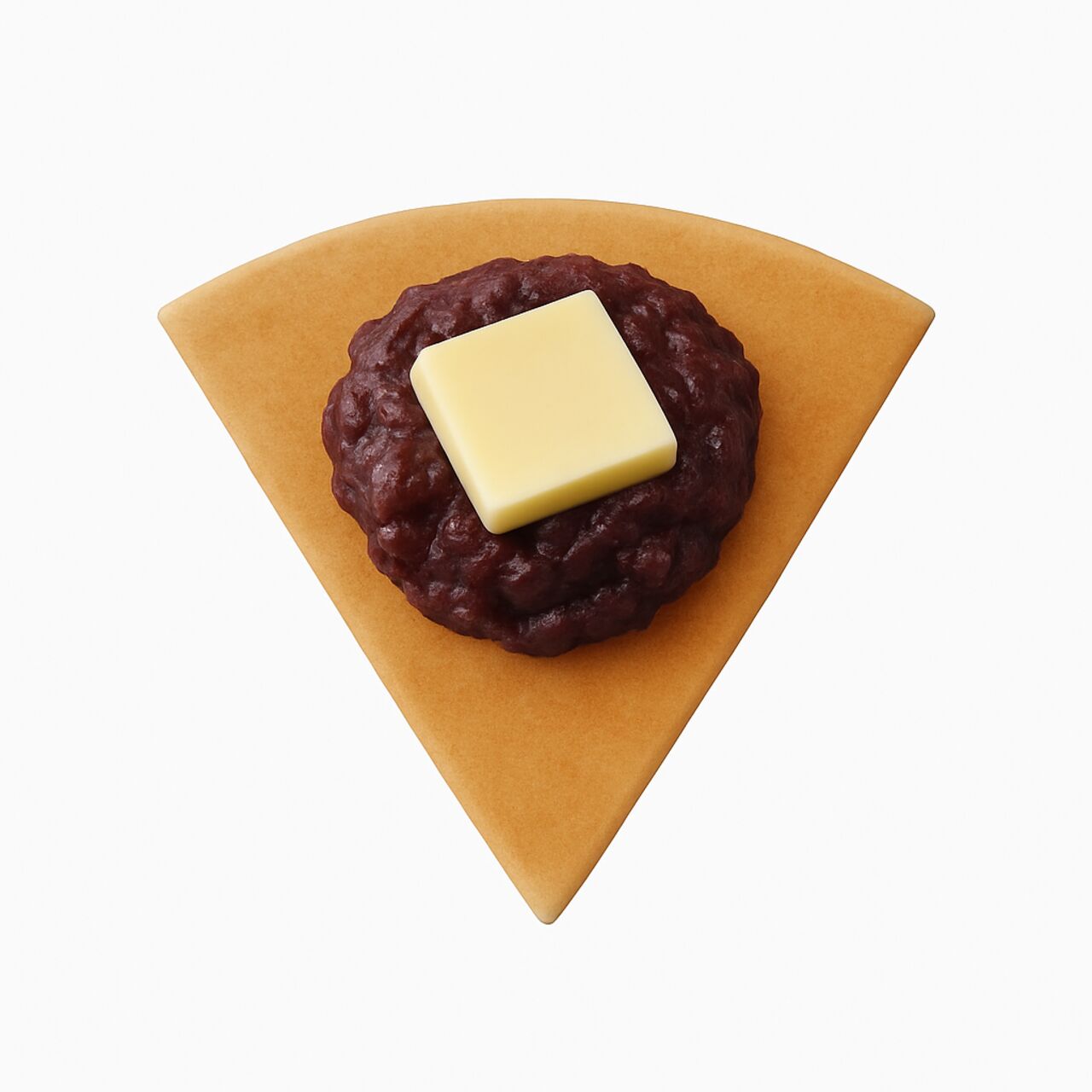 シュガーバターの生地にあんことカットしたバターを乗せた温かいクレープ