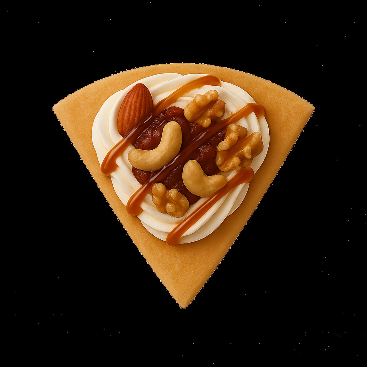クルミやカシューナッツ・アーモンドなどのナッツとキャラメルソースのクレープ