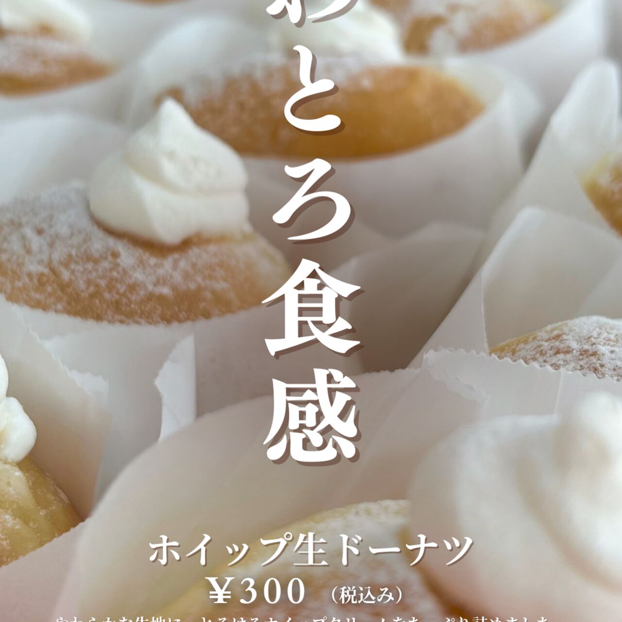 ドーナツ生地にホイップクリームが入った生ドーナツです。