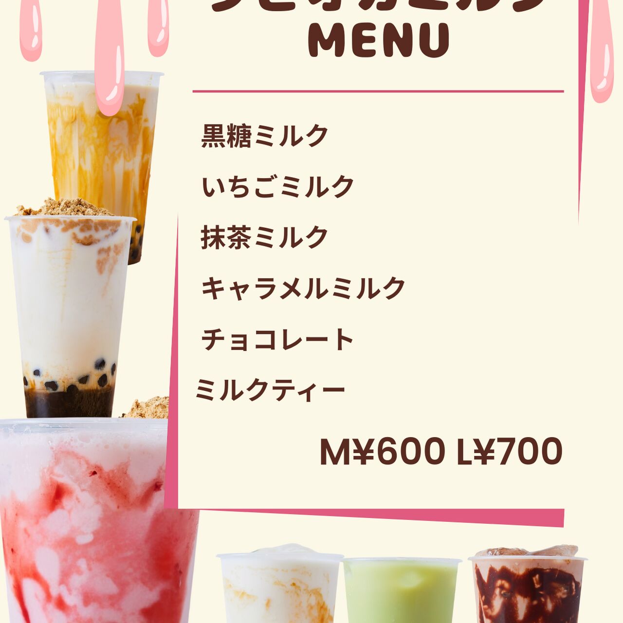 もちもちのタピオカがミルクの中にゴロっと入っています。様々な種類があって選ぶのも楽しみです。