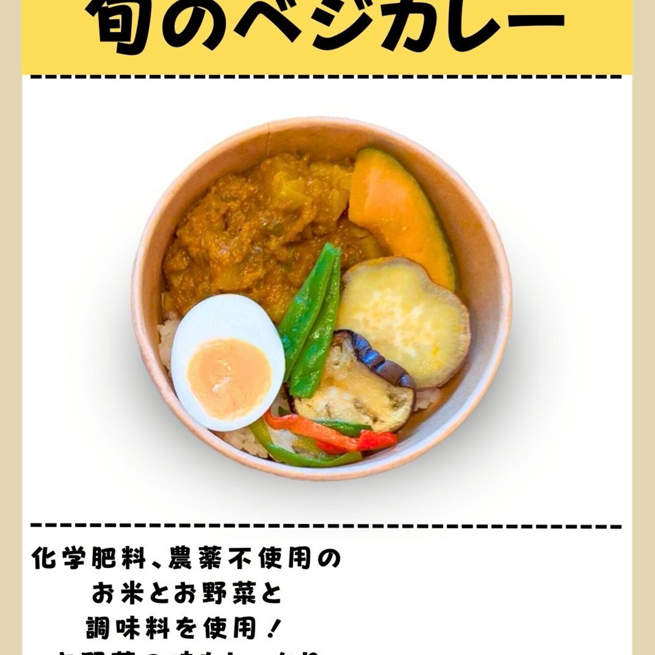 化学肥料農薬一切不使用のお米と野菜を使った野菜丼。(オーガニックの野菜使用時もあります)季節によってお野菜の内容は変わります。ミニサイズもあります♪