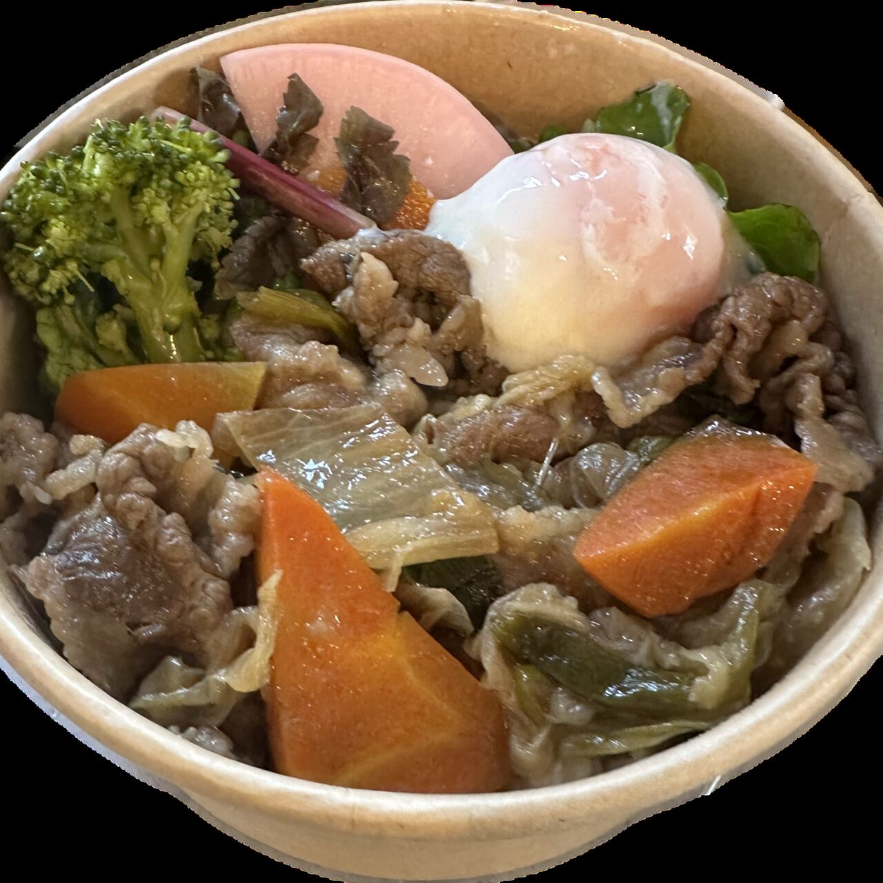 季節限定!漢方和牛と化学肥料農薬不使用の旬のお野菜をたくさん使用したすき焼き丼です。調味料も着色料保存料添加物不使用です。
