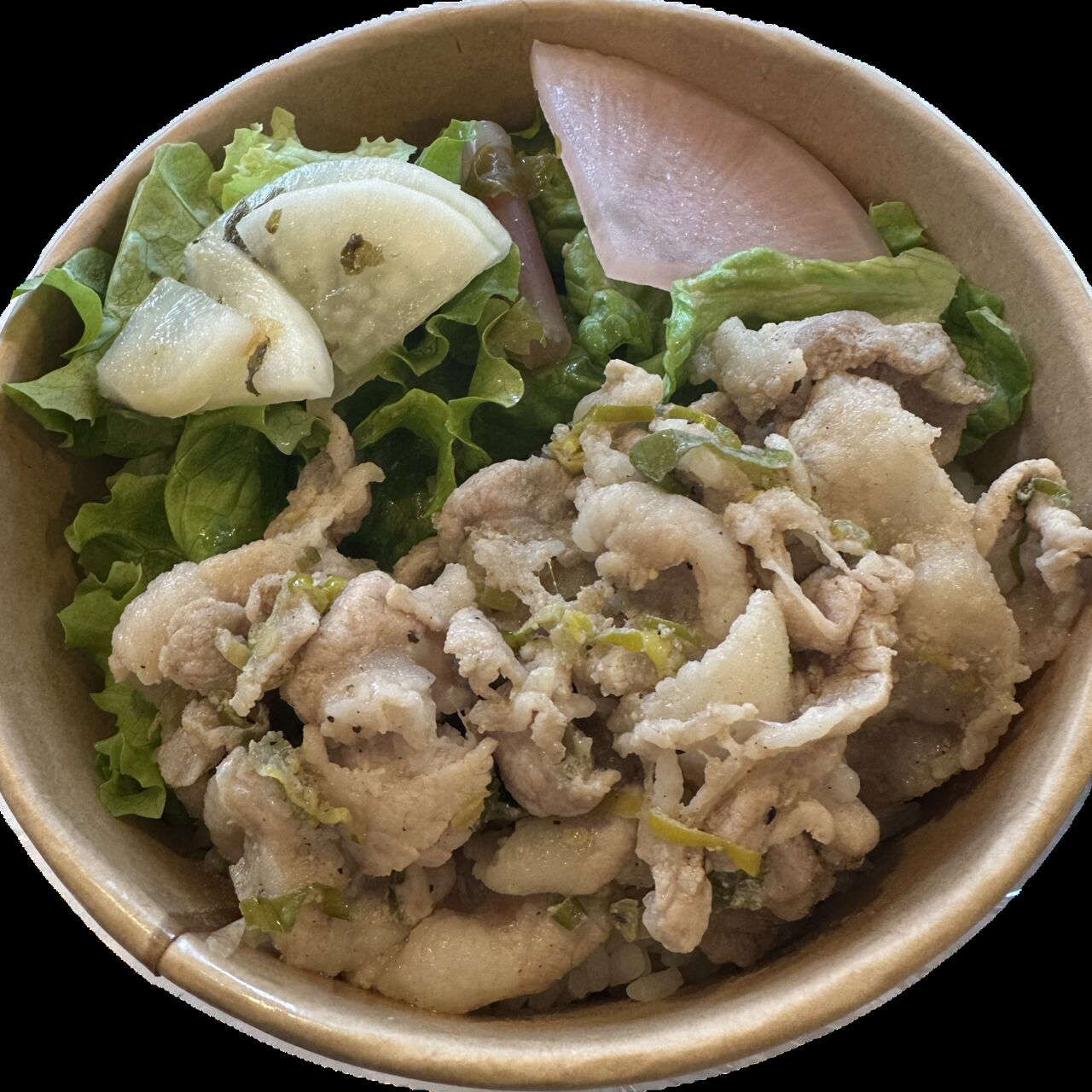 化学肥料農薬不使用のネギとレモンを使用した、旬のネギ塩レモンだれにじっくり漬けた豚丼になります。
