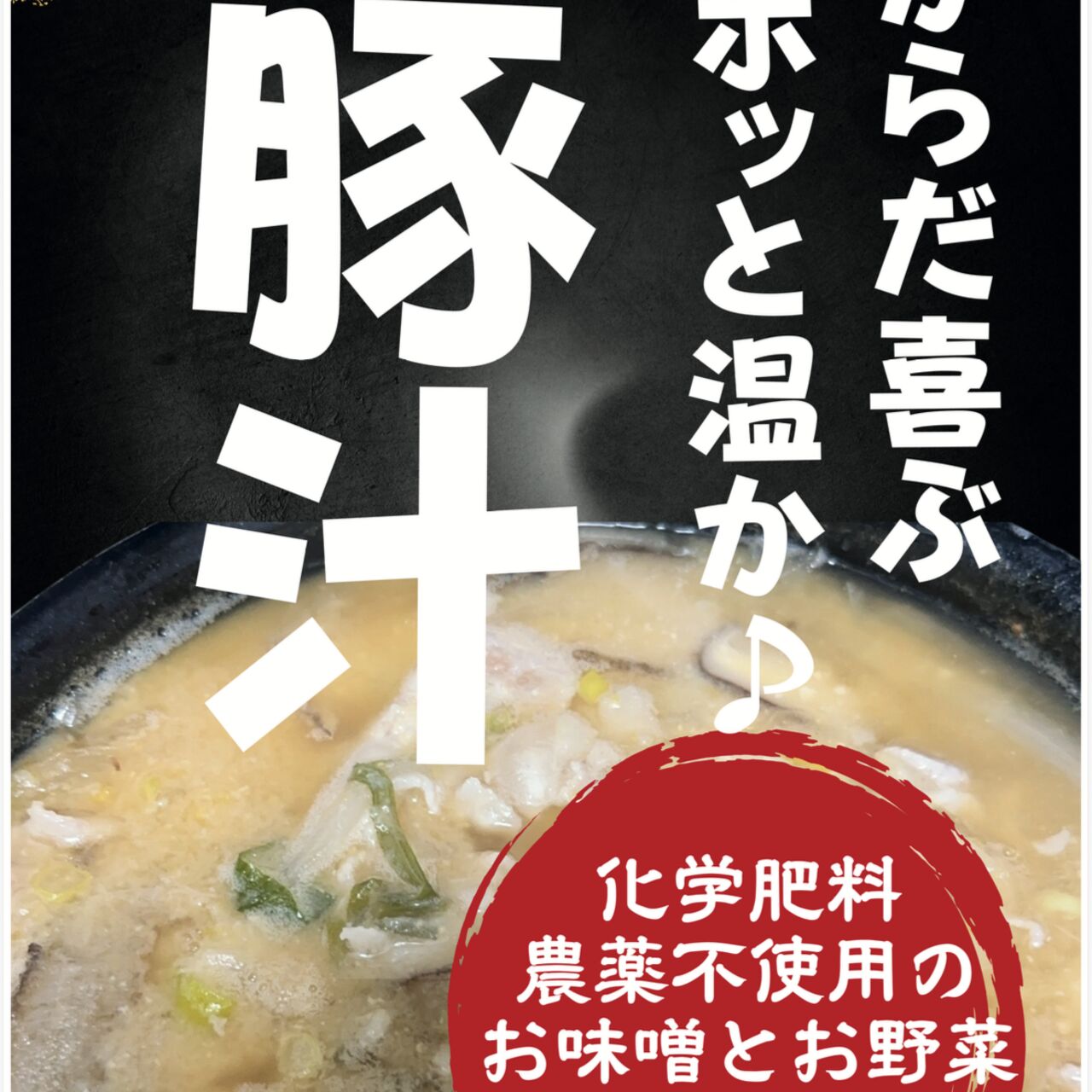 化学肥料農薬不使用のお野菜とお味噌で出来た豚汁です。