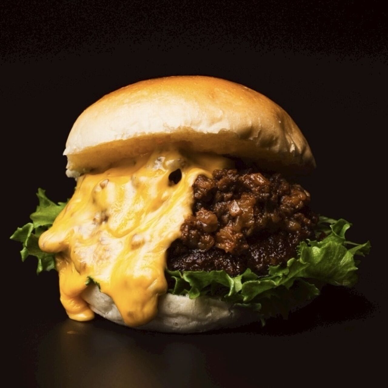 ハンバーガーとパスタの専門店だからできたコラボバーガー。上州牛パティの上に自家製ボロネーゼとチーズがかかった逸品。