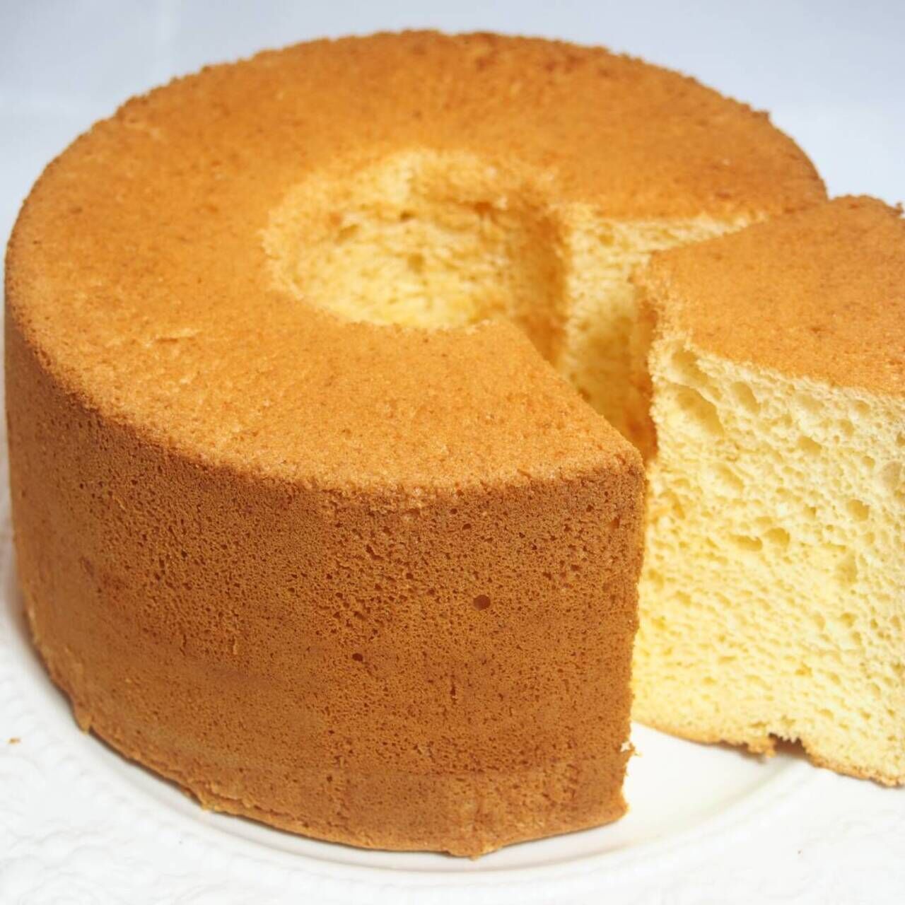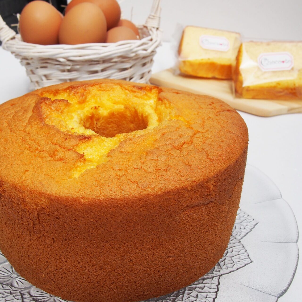 卵は青森県産の平飼い卵、砂糖は粗く精製した洗双糖、油は米油、香りづけにバニラビーンズを使用した贅沢なシフォンケーキです。