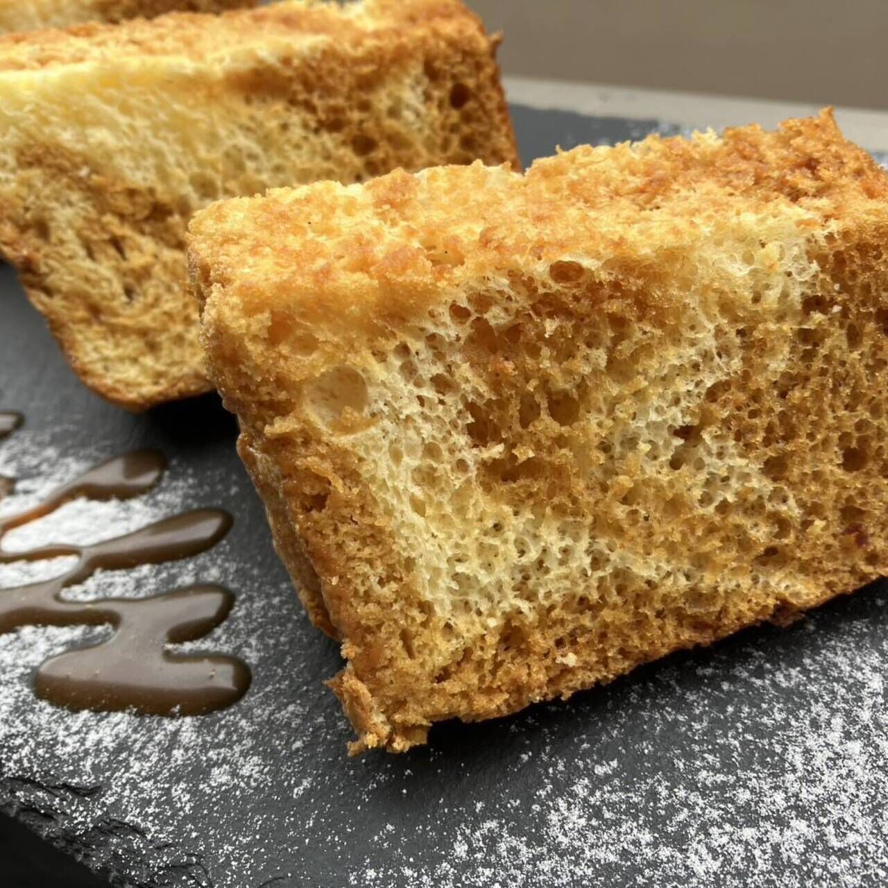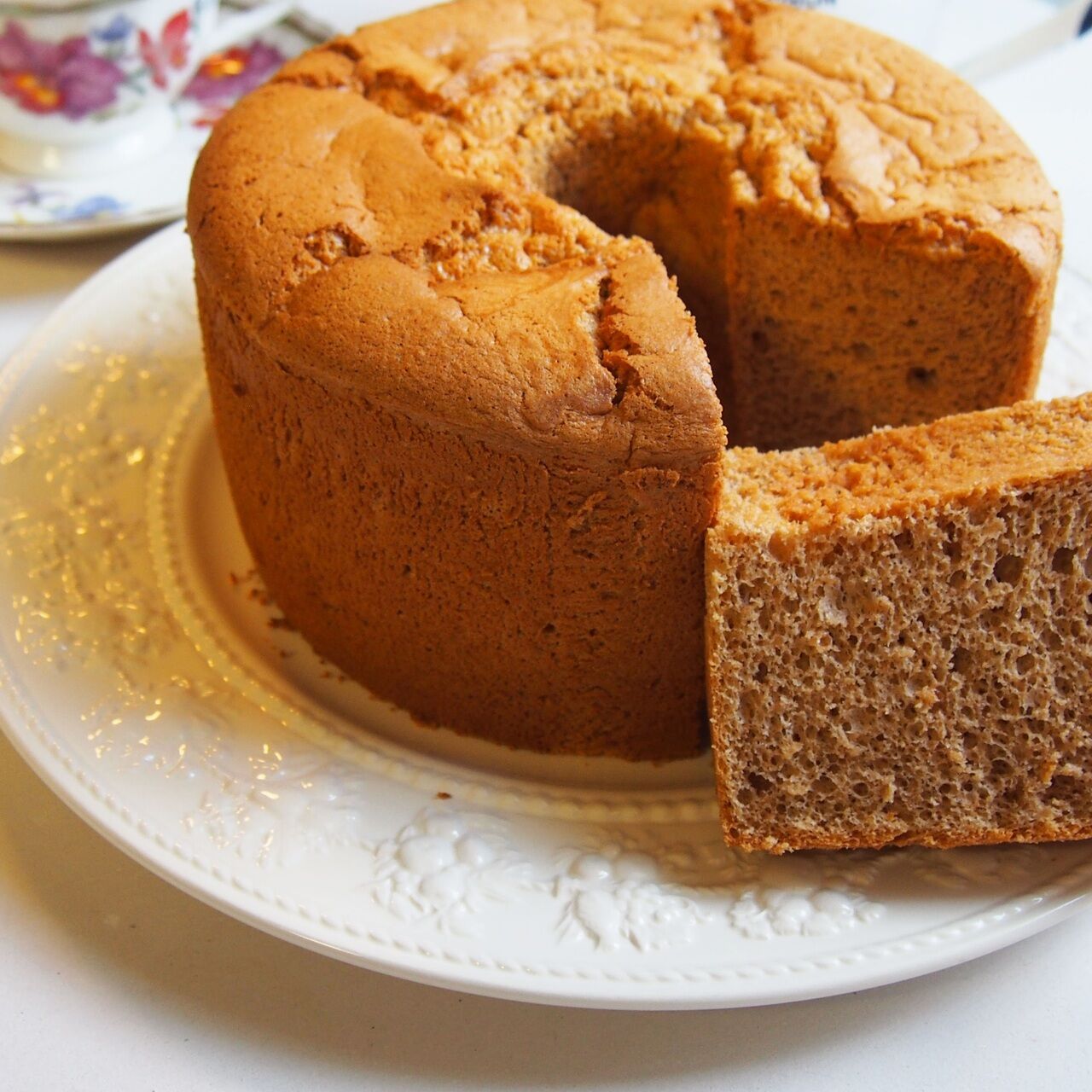 想像する以上に美味しいシフォン。風味豊かなキャソナード(赤砂糖)も良いアクセントに。
