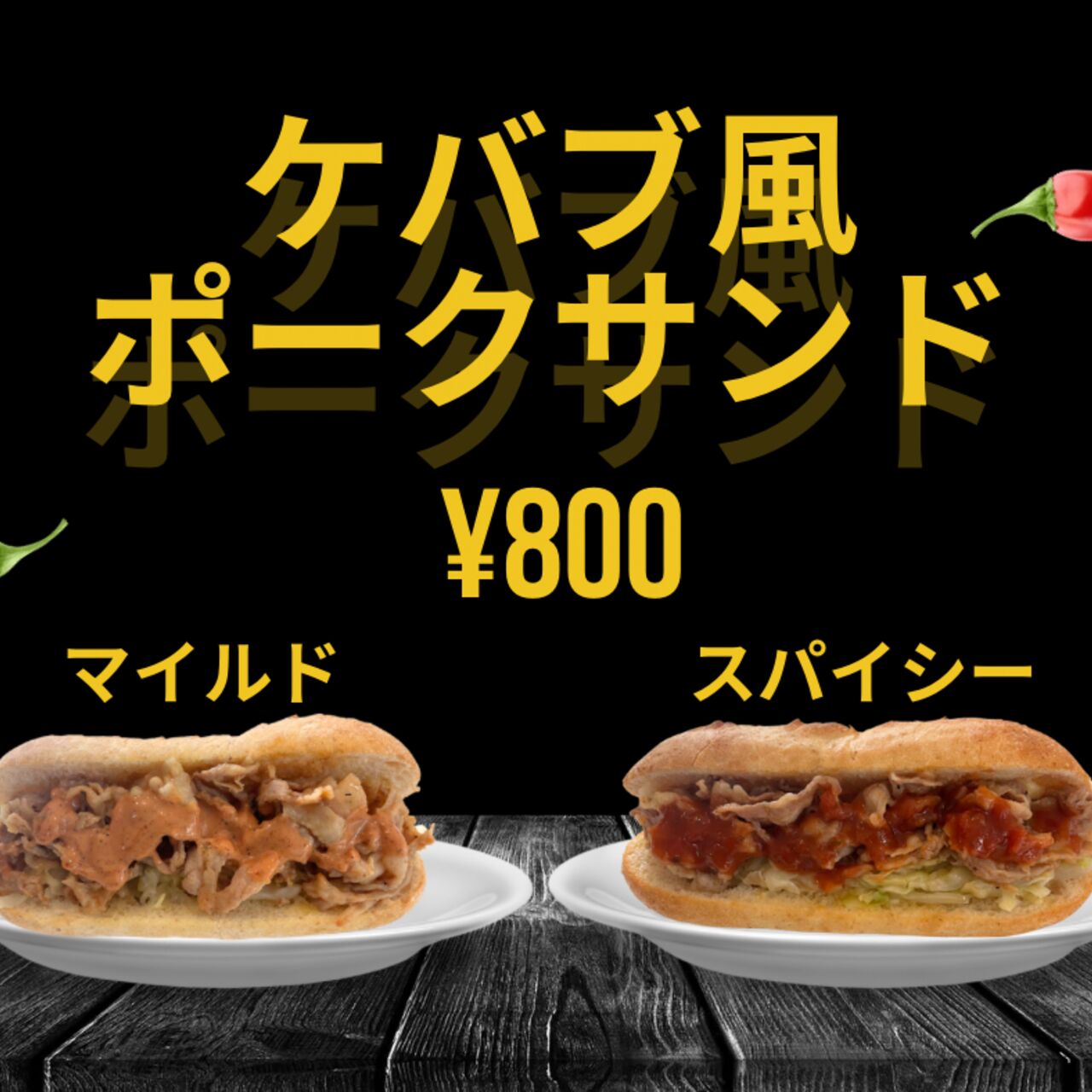 カスクートにケバブソースで味付けしたやわらかいポークを挟みました