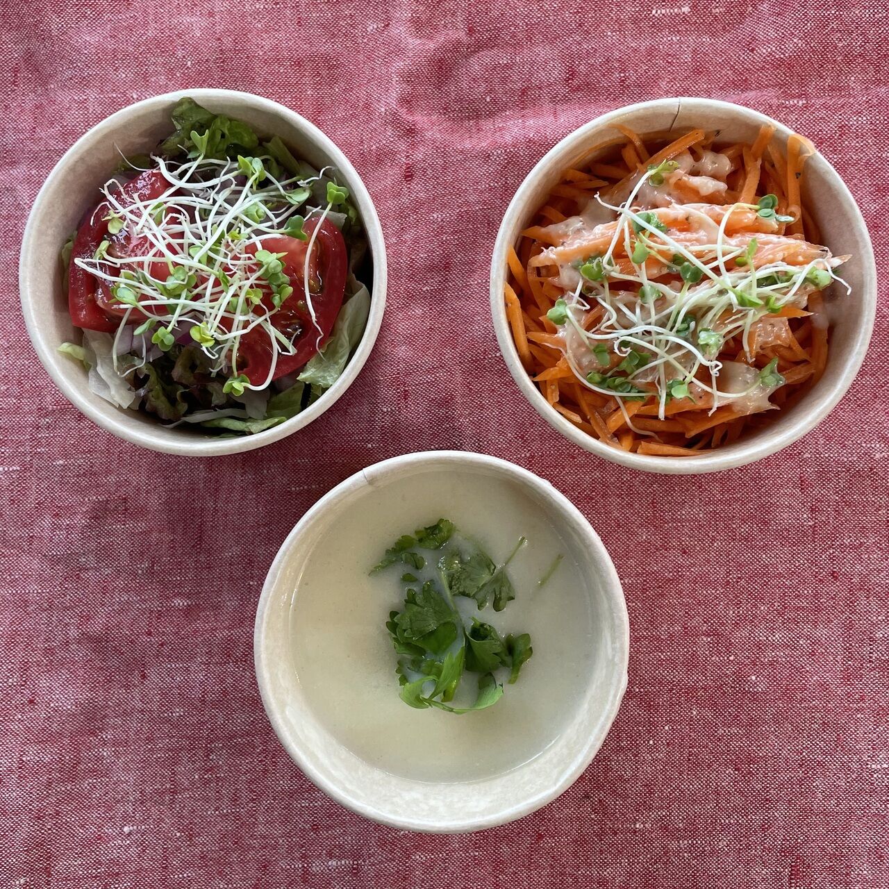 平日限定のランチセットです。グリーンサラダ、にんじんサラダ、本日のスープより1品お選びいただきます