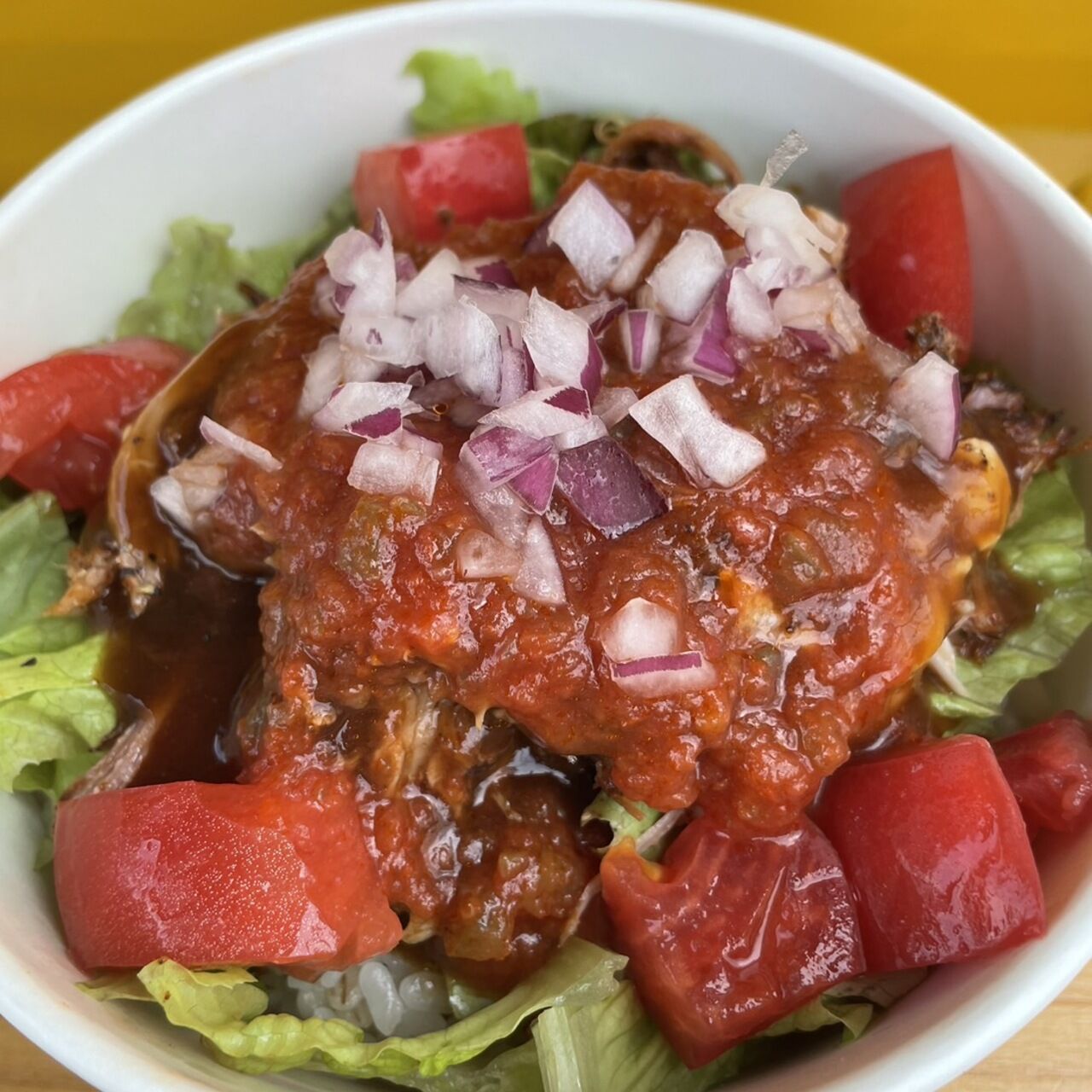 豚の塊肉をホロホロになるまでじっくりスモークしオリジナルBBQソースと絡めてた逸品。トッピングメニューもあります