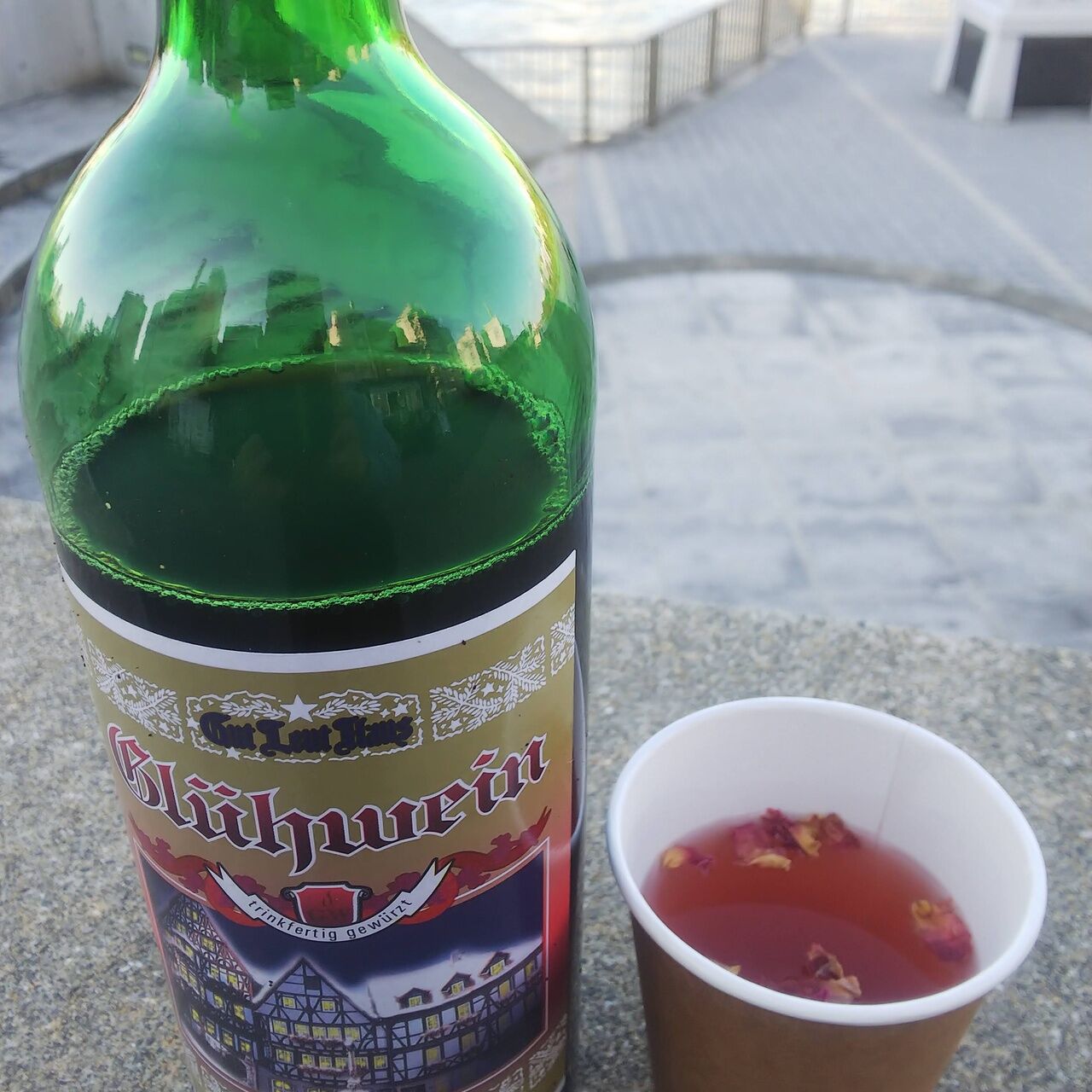 グリューワインに、食用バラの花びらのエキスを注入、スチーマーで温めるのでほとんどアルコールも飛びません