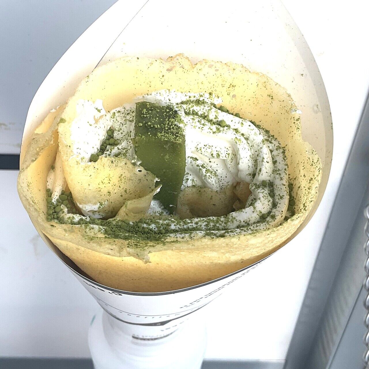 ほろ苦い抹茶ケーキを使用した和風クレープです。