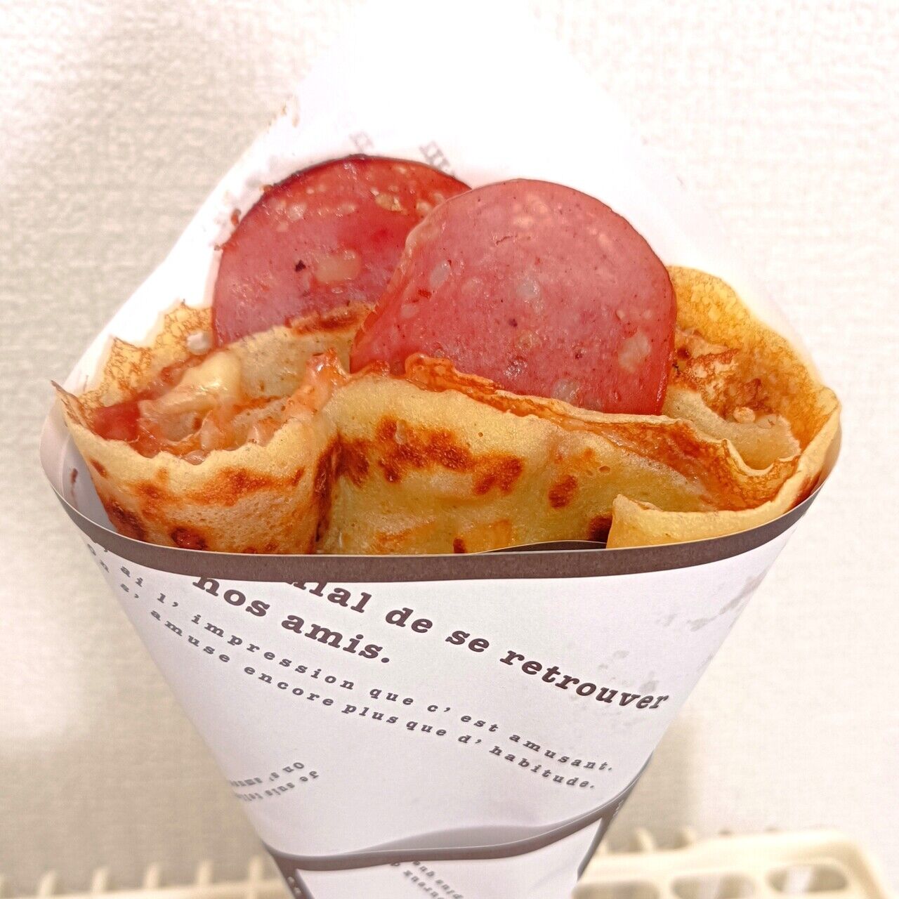 よく伸びるモッツァレラチーズを使用したまるでピザのようなクレープです。