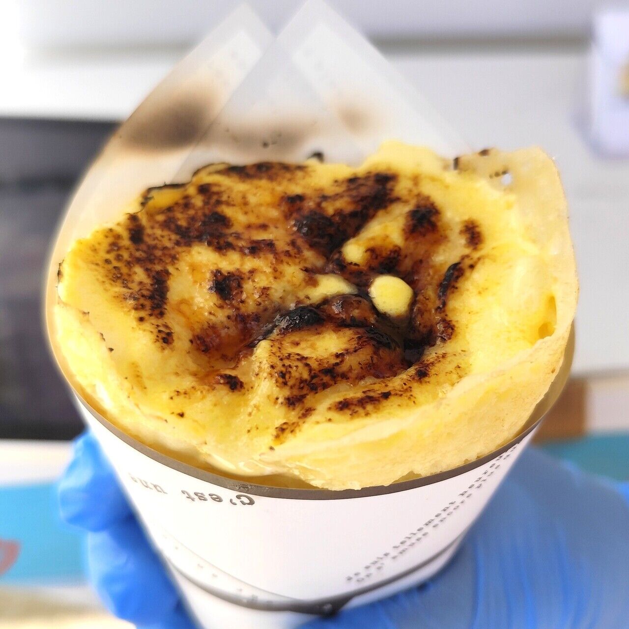 濃厚なカスタードをたっぷり使用!表面はバーナーで炙りカリカリの食感が楽しめます。