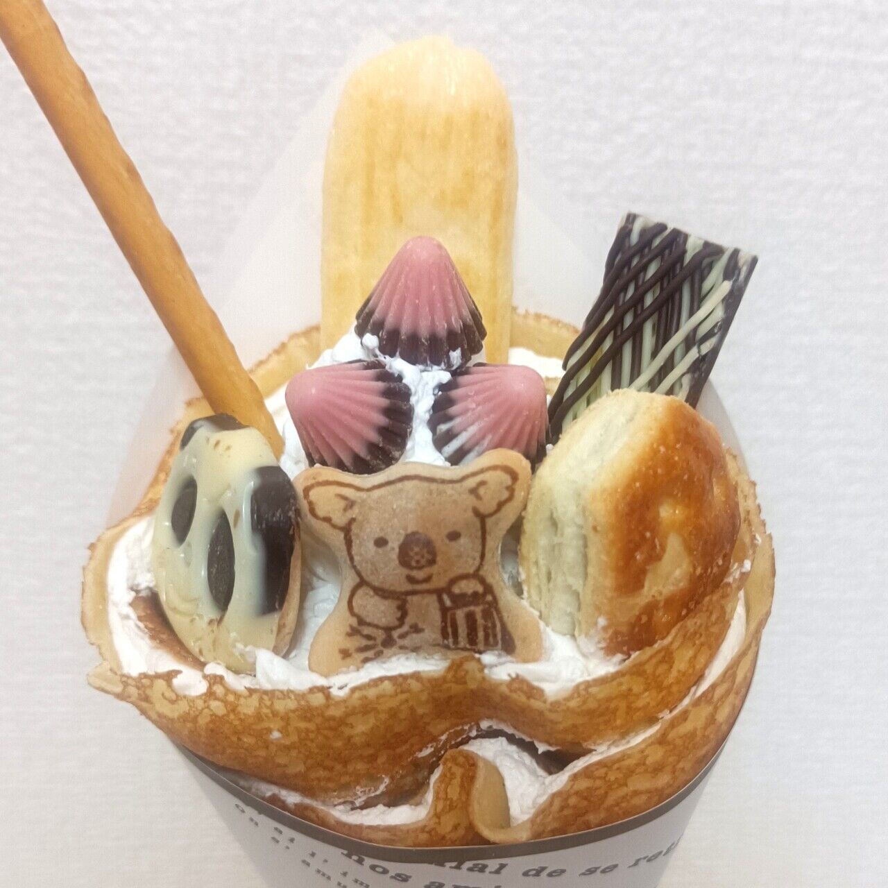 人気のおかしをふんだんに使用したお子様受けバツグンのクレープです。中にはバナナも入っています。