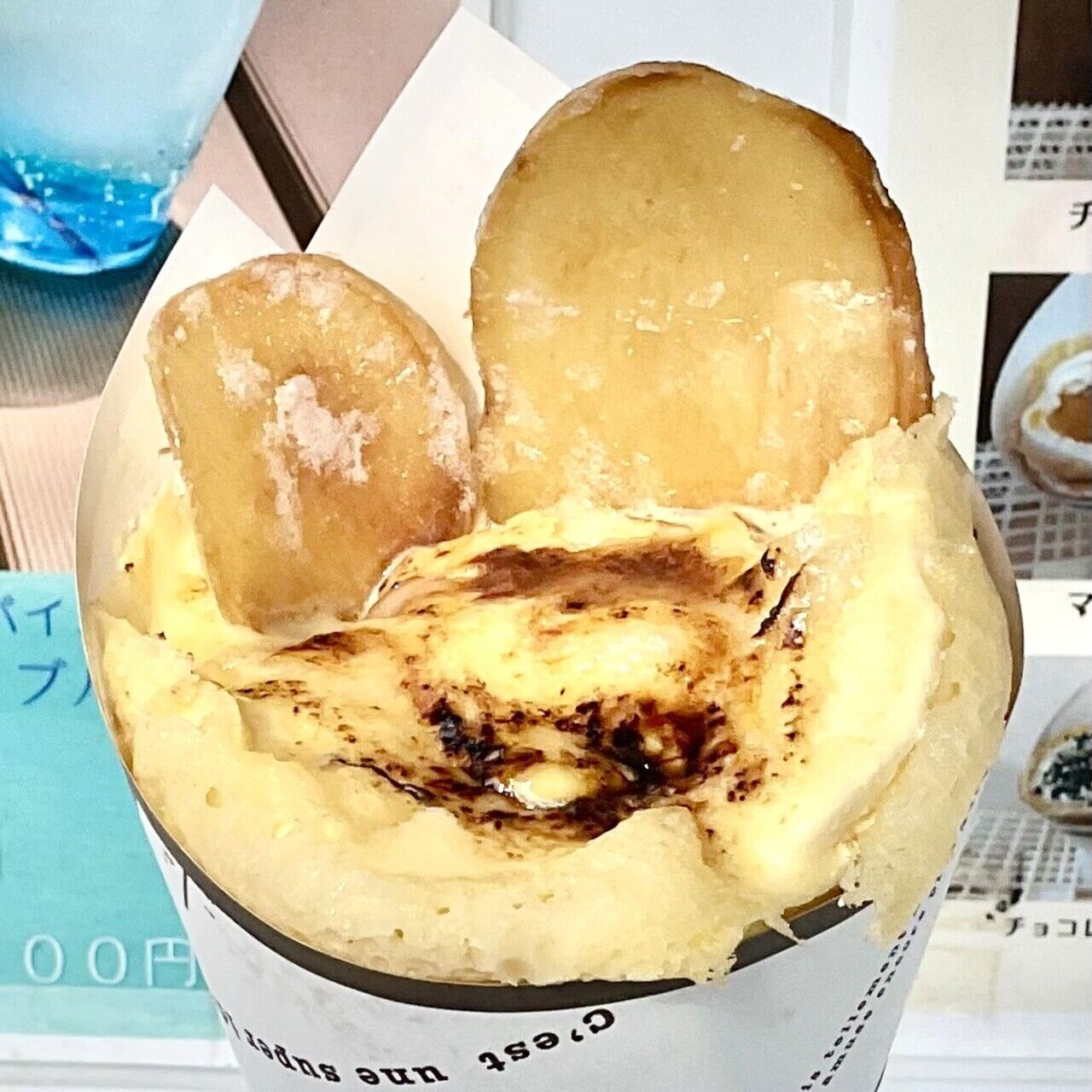人気のクレームブリュレにさつまチップスと大学芋を組み合わせたクレープです。