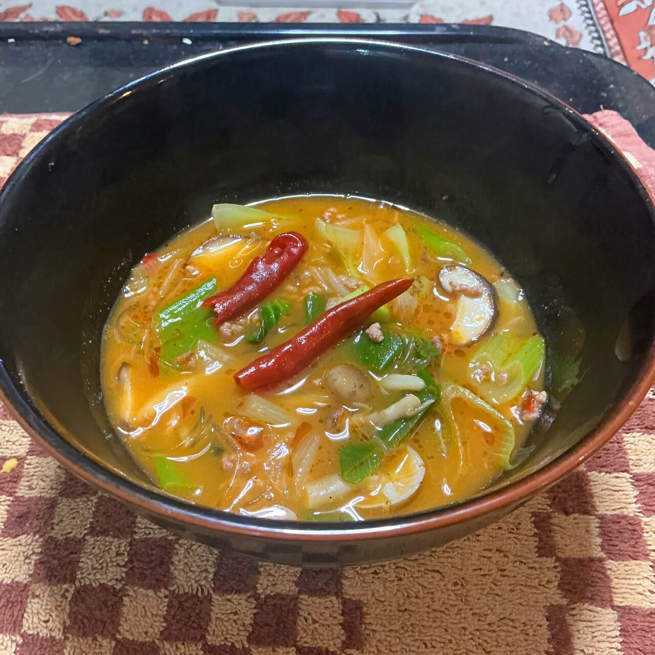 四川花椒と赤唐辛子の辛味が効いた中華スープ