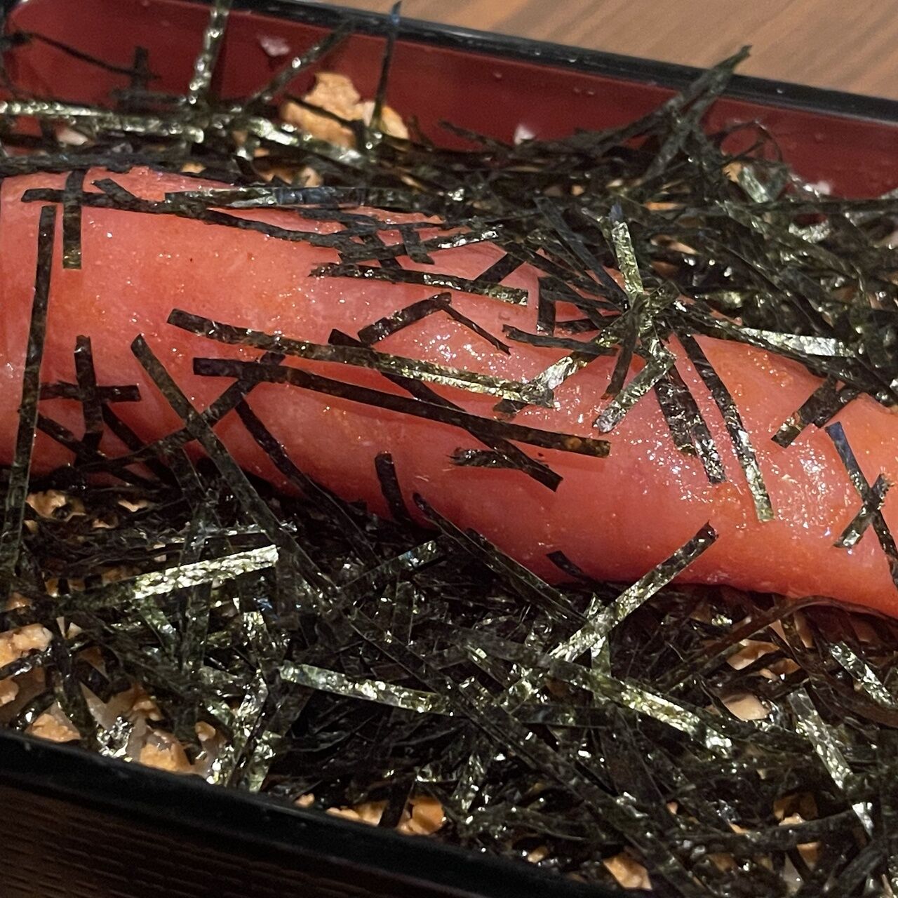 テレビでも紹介された痛風重!あん肝を敷詰め茨城めんたいをのせました!