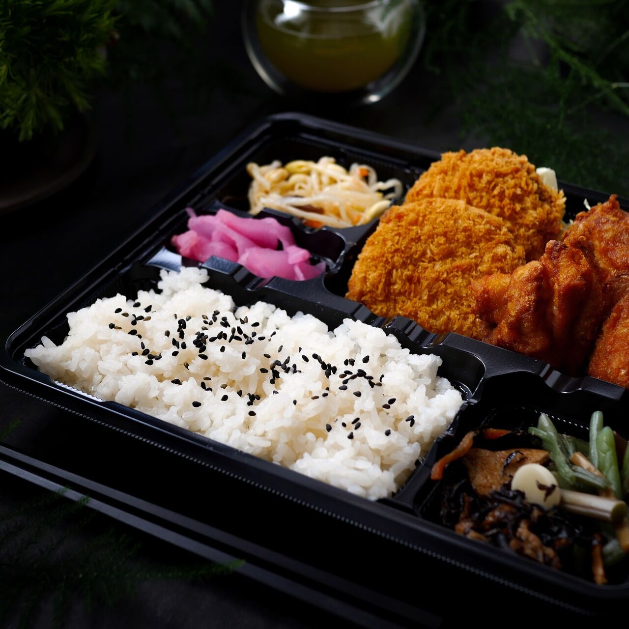 熟成ヒレカツと和風からあげを組み合わせた満足感ある二種盛り弁当です。