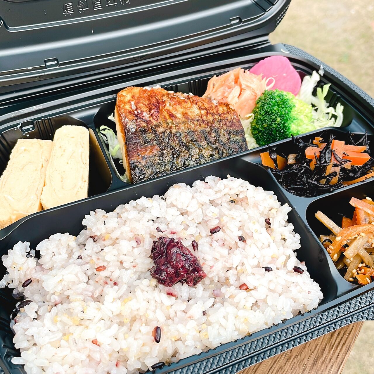 十六穀米にこだわりの塩さばをそえたヘルシーお弁当です。