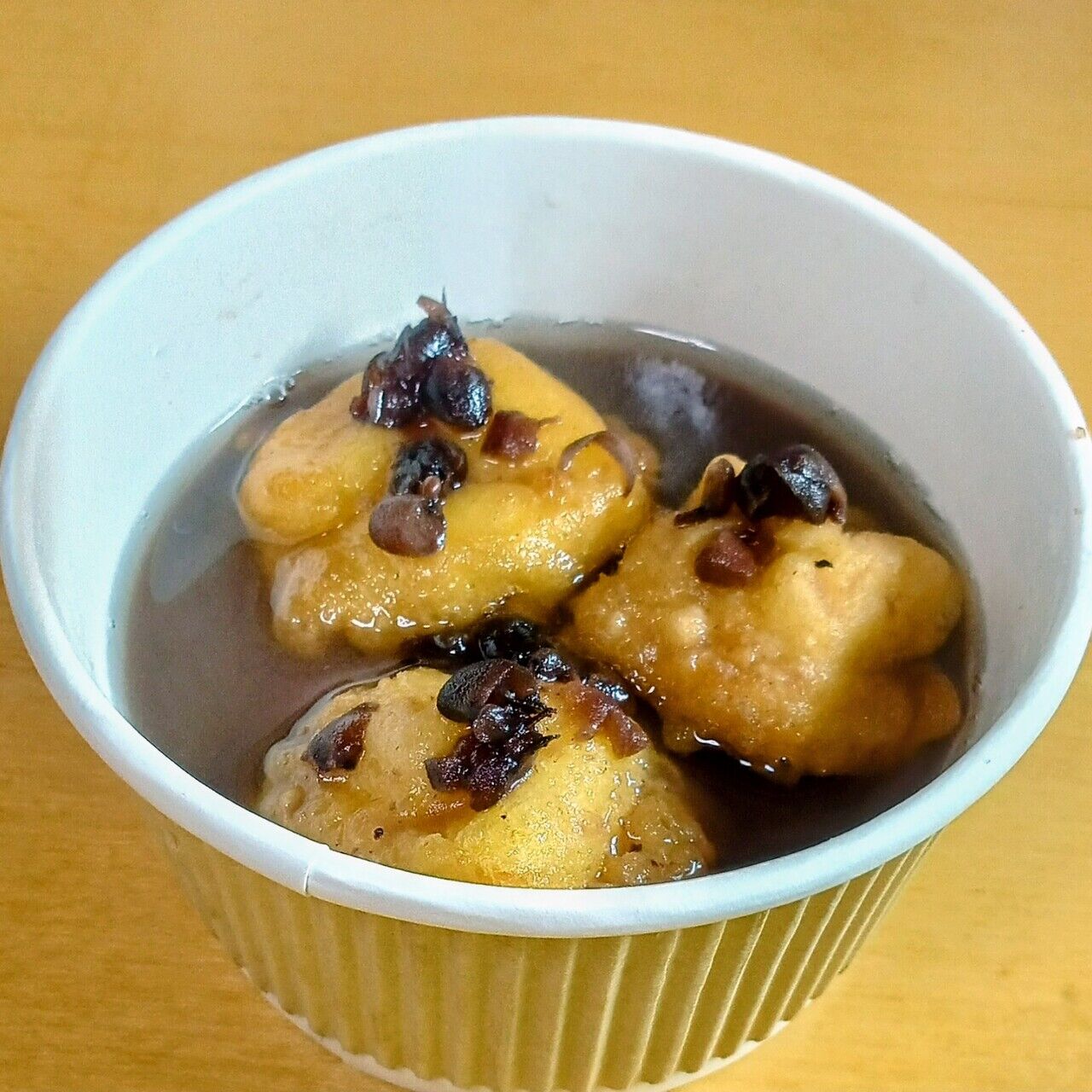 北海道産100%の大豆を使用。ぜんざいと一口サイズの揚げパンはバッチリの相性です!