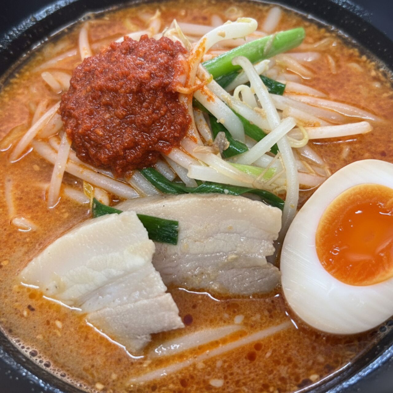 辛味噌は4種の唐辛子をつかったオリジナル。鶏がらフープに秩父・我奥の特製味噌を使った深みのあるスープに、北海道札幌西山製麺の熟成麺を使用。