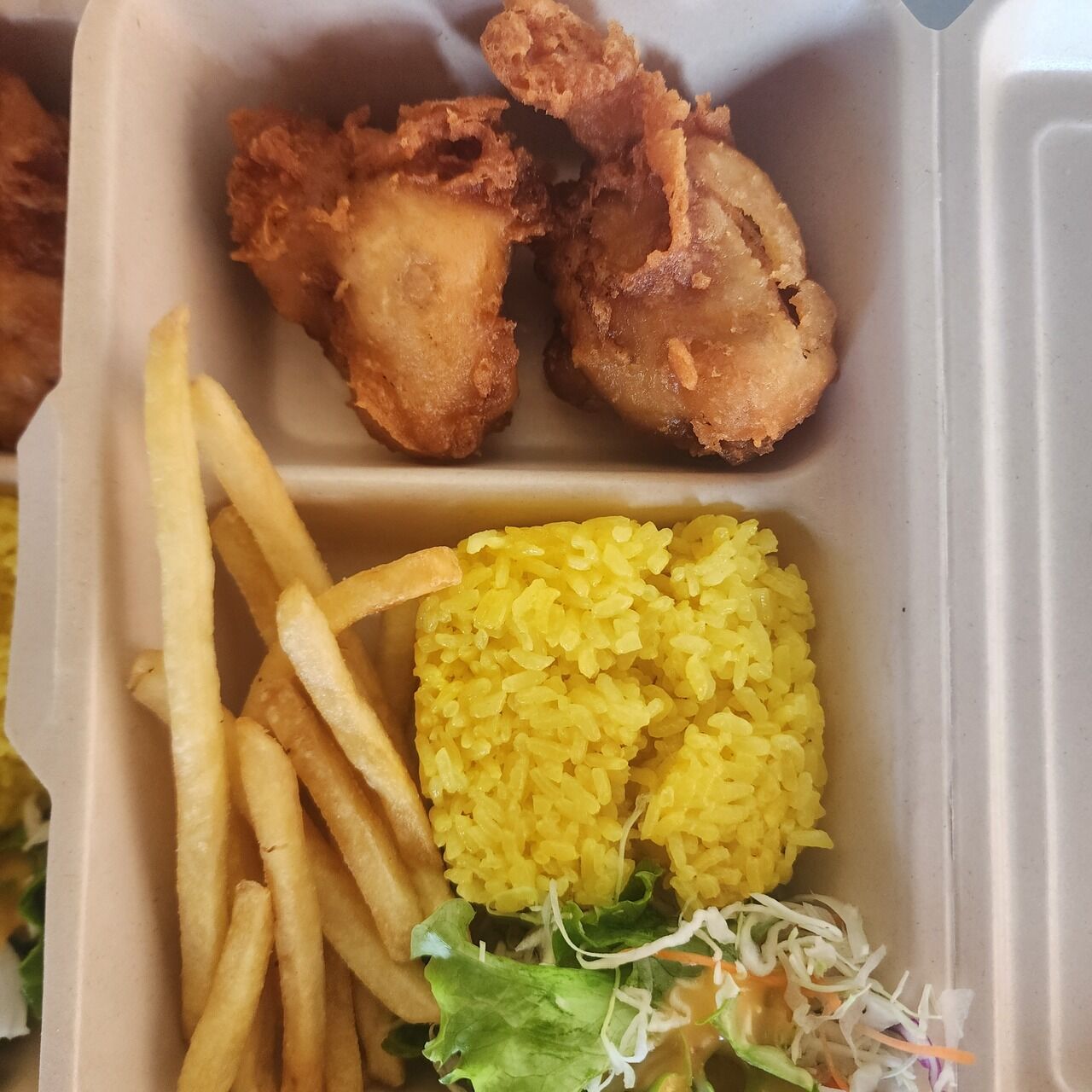 チキン2個・半ライス・半ポテト・半サラダのセット
