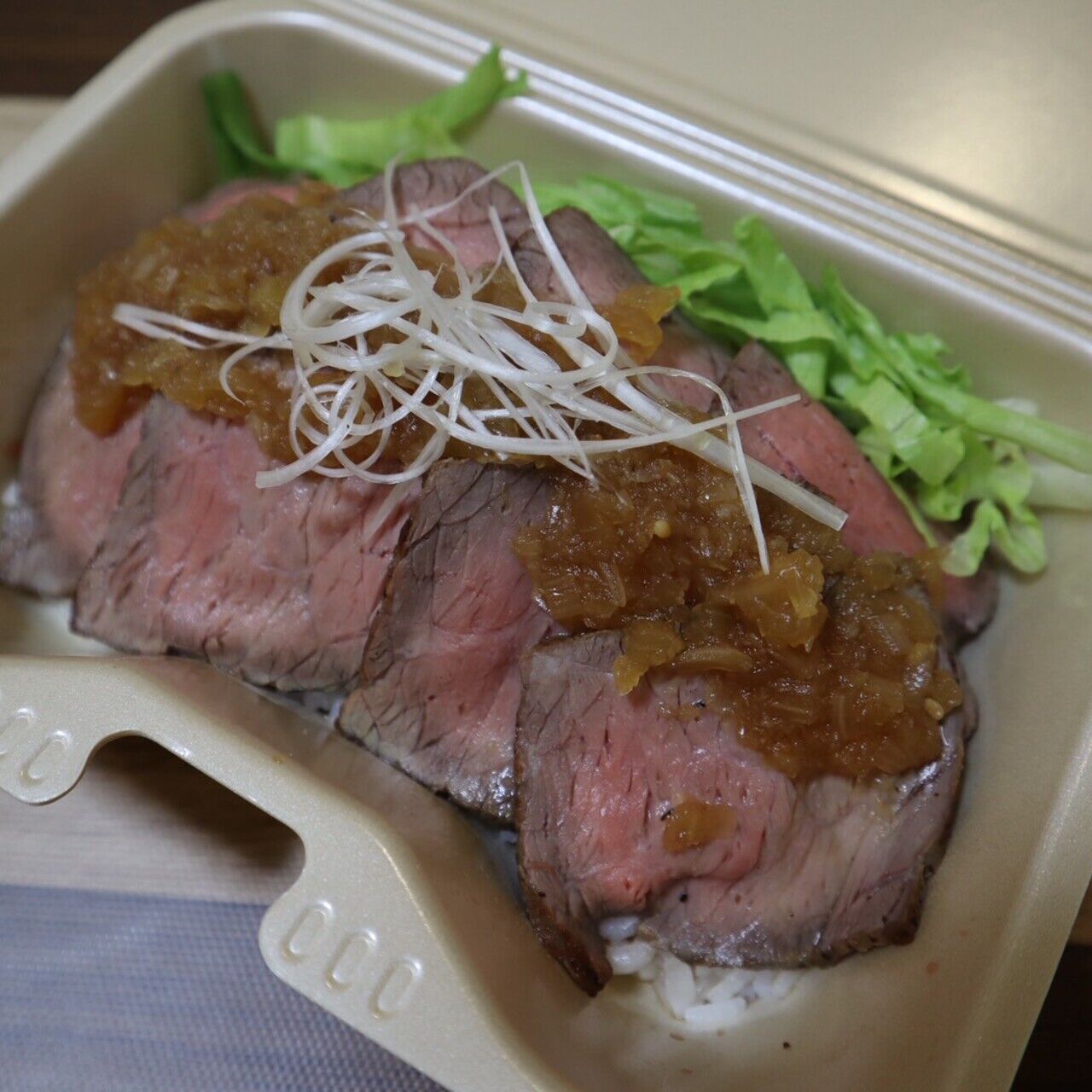 ローストビーフにニンニク、生姜が効いたタレをかける