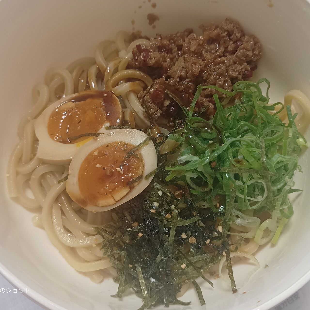 太麺とお肉屋さんのミンチを使ったまぜそばです