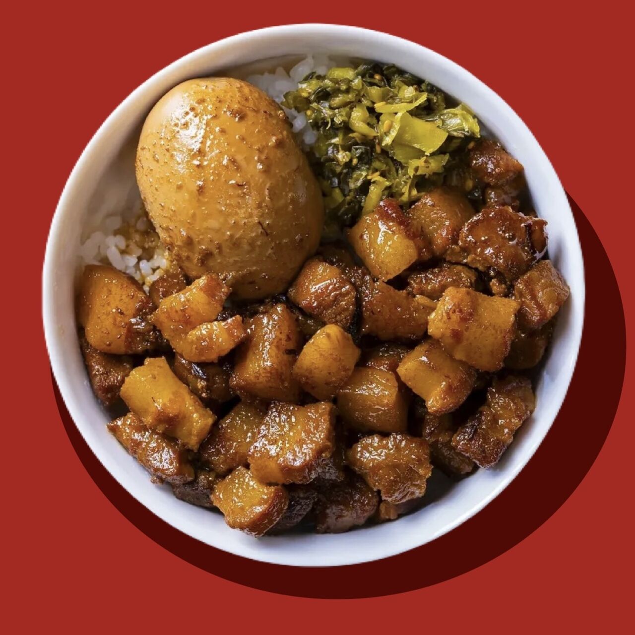 じっくり煮込んだ国産豚肉と 薬膳師厳選の香辛料の香りがふわっと広がり旨みがご飯に染み込む。 ひと口で台湾の屋台気分に浸れる、幸せのルーローハン。