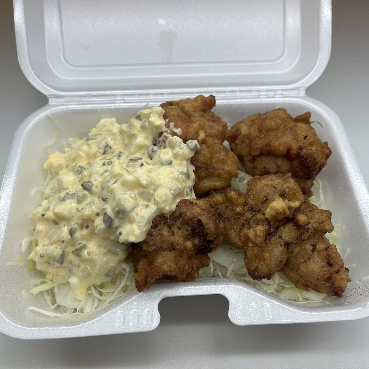 国産鶏もも肉を使用したからあげの丼です。自家製タルタルソースをトッピングで選べます。タルタルソースご希望の方は店員にお伝えください。