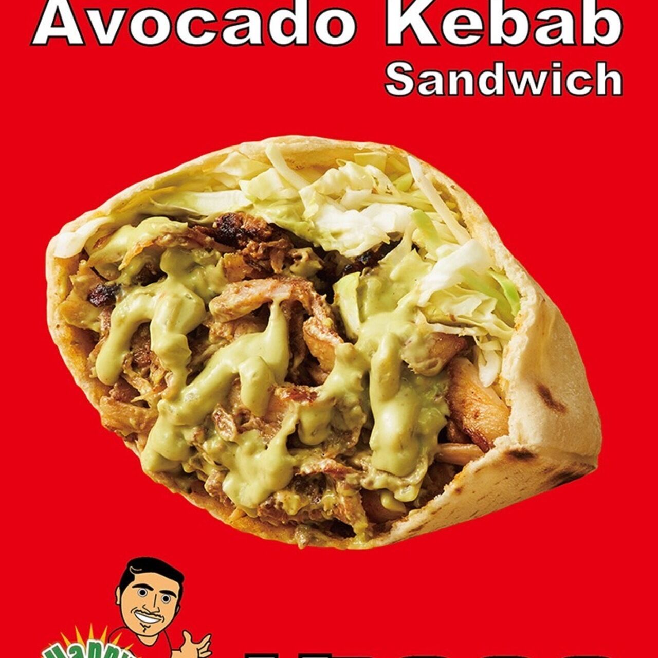 スパイスで焼いたケバブのお肉に、クリーミーなアボカドソースと野菜を合わせたサンドです。 まろやかで食べやすい味です。