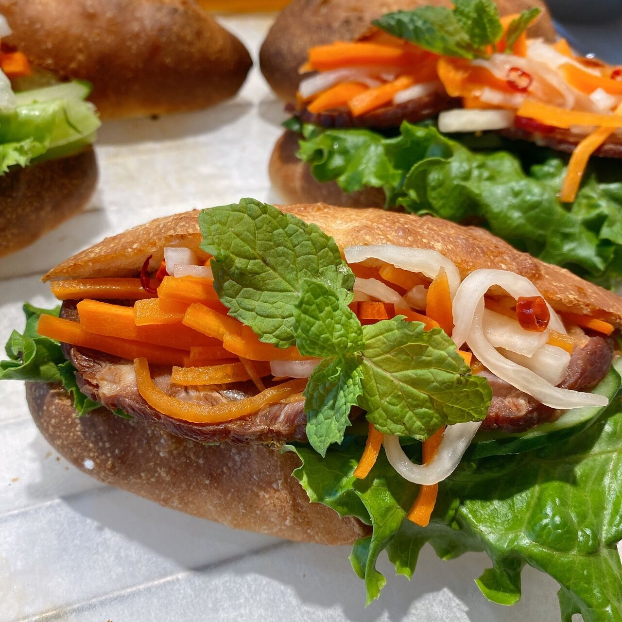 パリッとしたフランスパンの食感とサッパリとした具材の組み合わせが特徴のボリュームのあるベトナム屋台定番のソウルフードです。