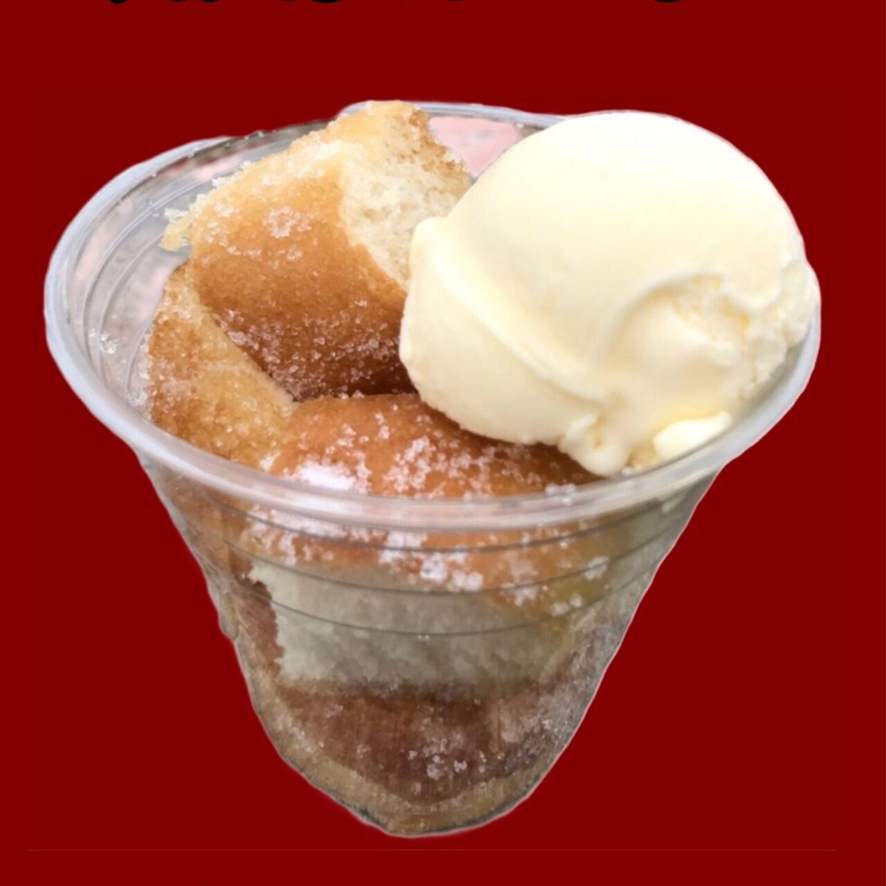 あげぱんをカットした上にバニラアイスをのせました。お好きなあげぱんの味をお選びください。