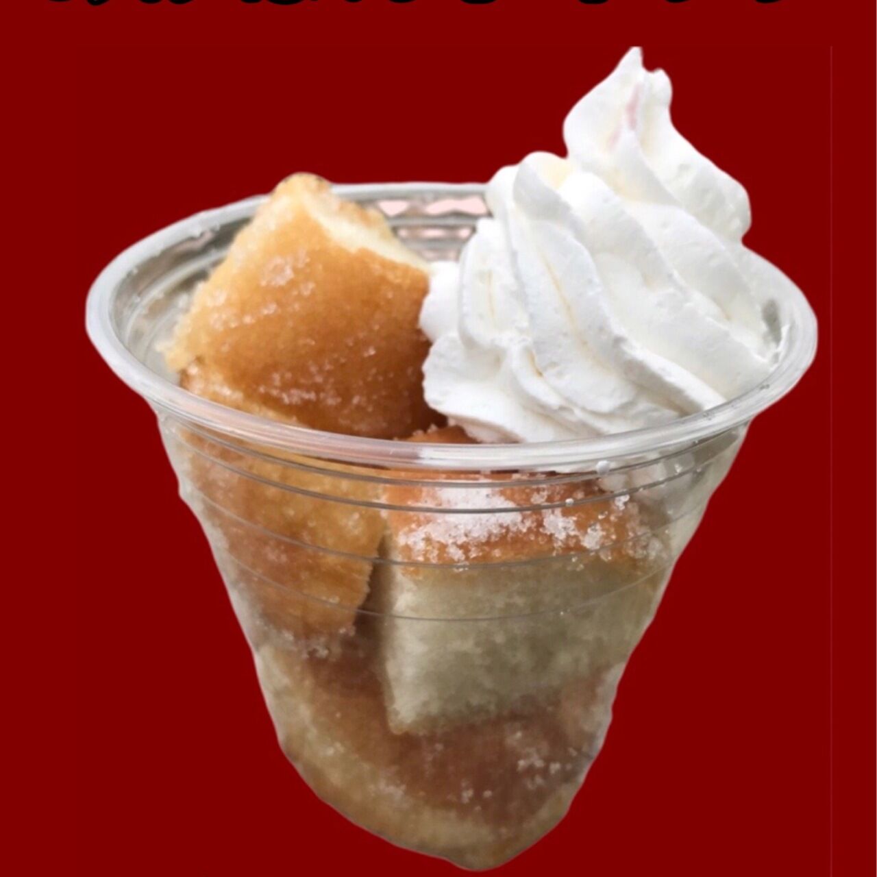 あげぱんをカットした上にホイップクリームをのせました。お好きなあげぱんの味をお選びください。