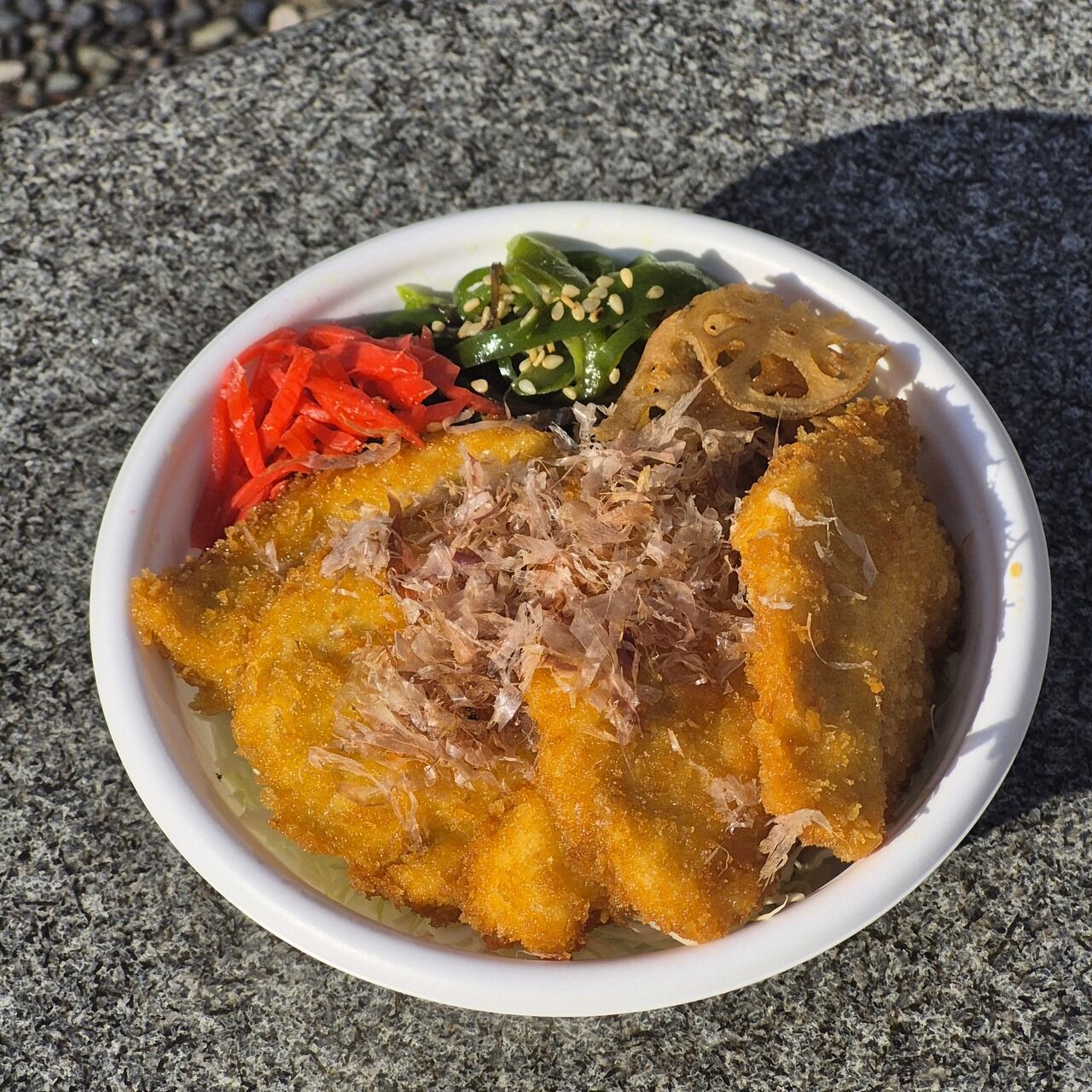 サクッと軽い口当りのとりむねのカツに、甘辛タレをかけました!紅生姜やちょっと惣菜を添えて、食べ飽きない美味しさです!