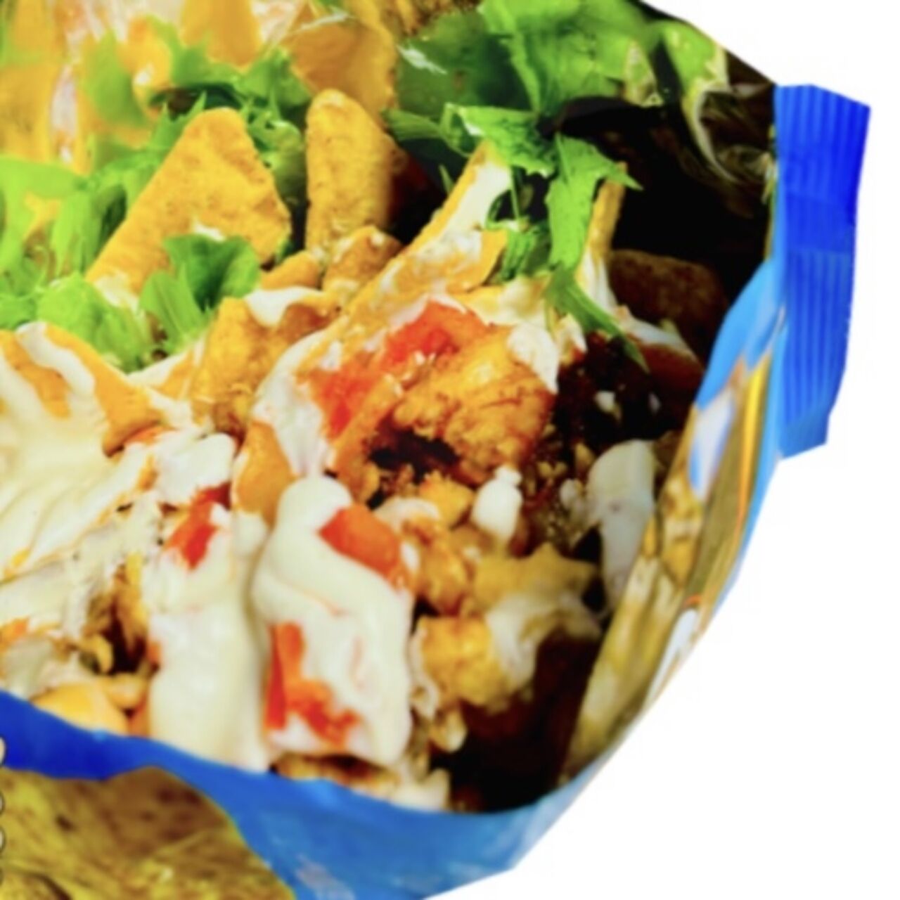アメリカのSNSで大流行!たっぷり野菜、揚げ焼きチキン、ヨーグルトソースを混ぜて食べるチップスサラダです