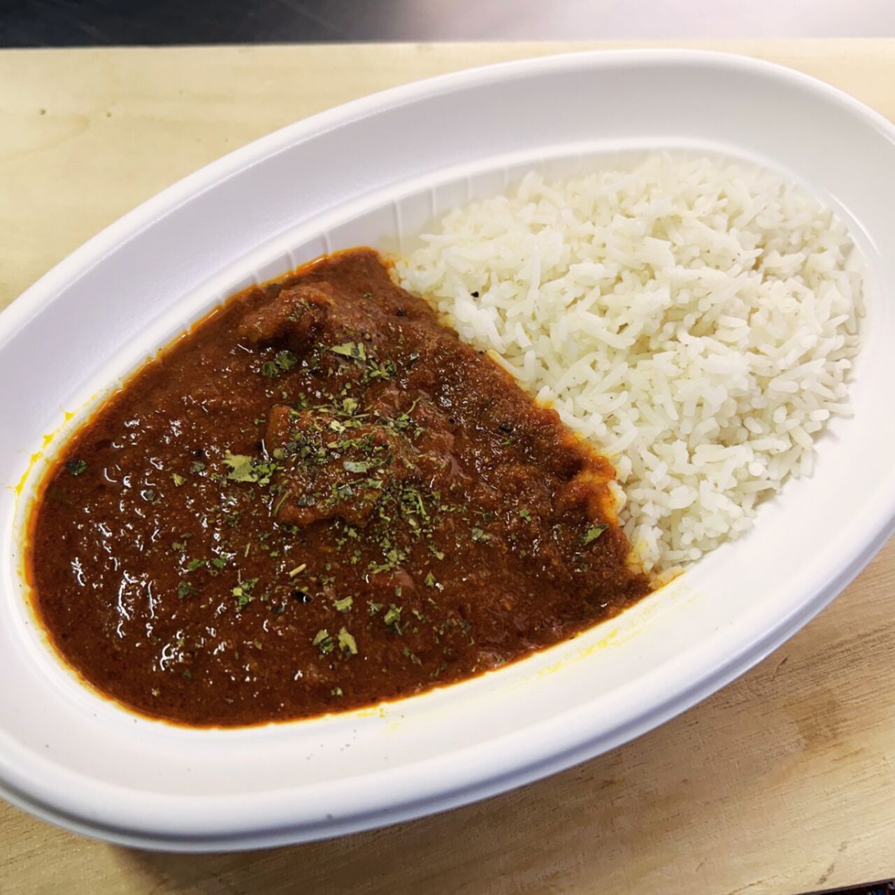 ライスはバスマティライスを使用しています。インドやパキスタンで食べられている香り米です。白米よりもパラパラのお米で当店のカレーにとても良く合います!