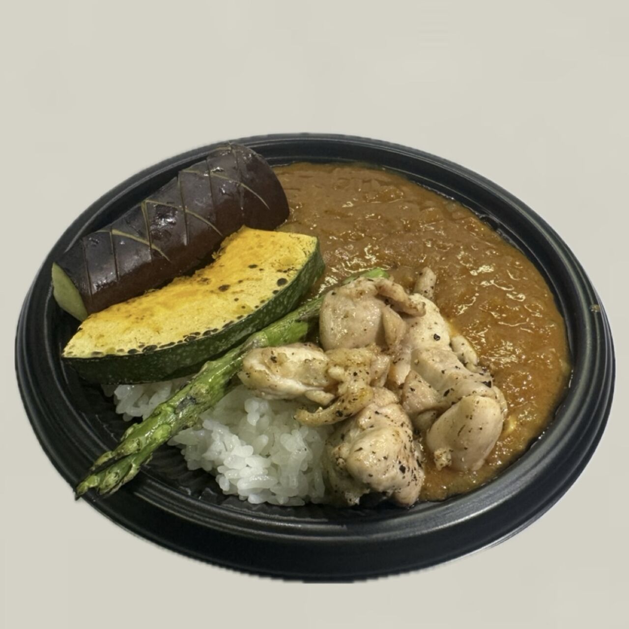 ※野菜トッピング+300円 香ばしいチキンとトッピングで彩り野菜を添えたスパイスカレー。素材の旨みと香りを楽しめる一品!!!