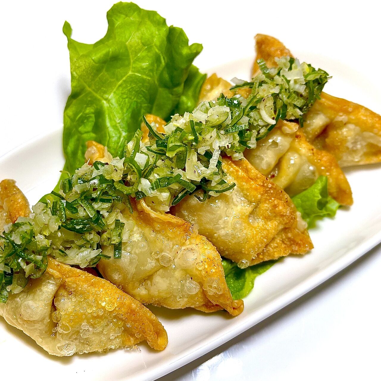 爽やか、サクサクのレモン葱揚げ餃子!葱の香りとレモンの風味がさっぱりと仕上げてます!おかず一品!