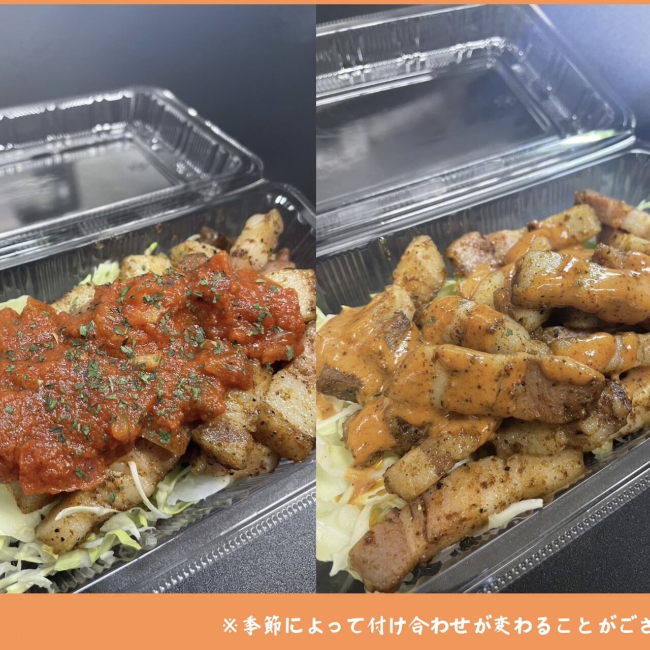 お米の上に鉄板焼き豚バラ、サルサソース、サウザンソース、チーズソース、カラフルなお惣菜もふんだんにのってます! 最近じわじわと人気上昇中!