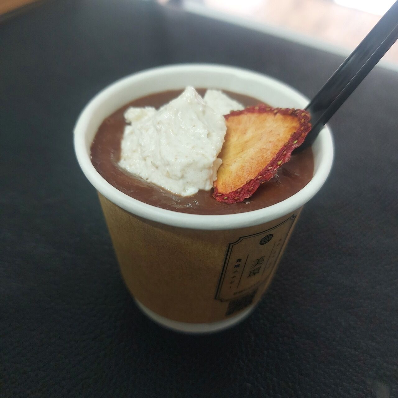 米麹を1.5倍使用した濃縮甘酒にフェアトレードのカカオパウダーを混ぜて作りました。まるでチョコレートのような艶と濃厚さがあります。