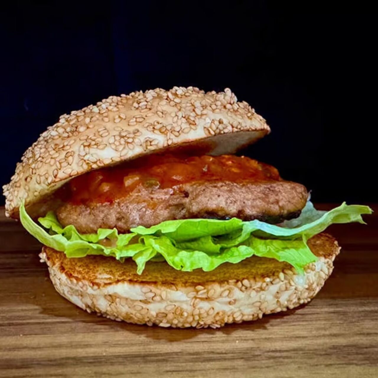 ハラペーニョの辛さとミートソースの濃厚な辛いバーガー、できました