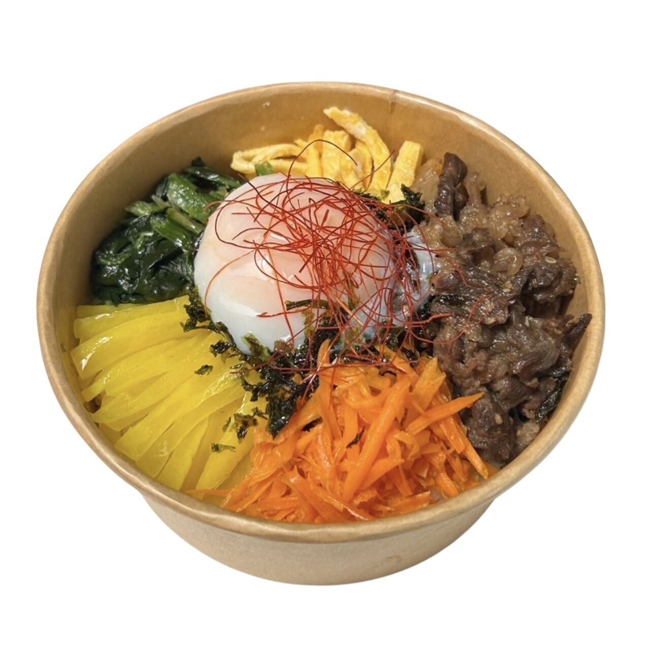 キンパの具、乗せちゃいました。ご飯がすすむ!具だくさんで満足感◎温玉なしもできます!