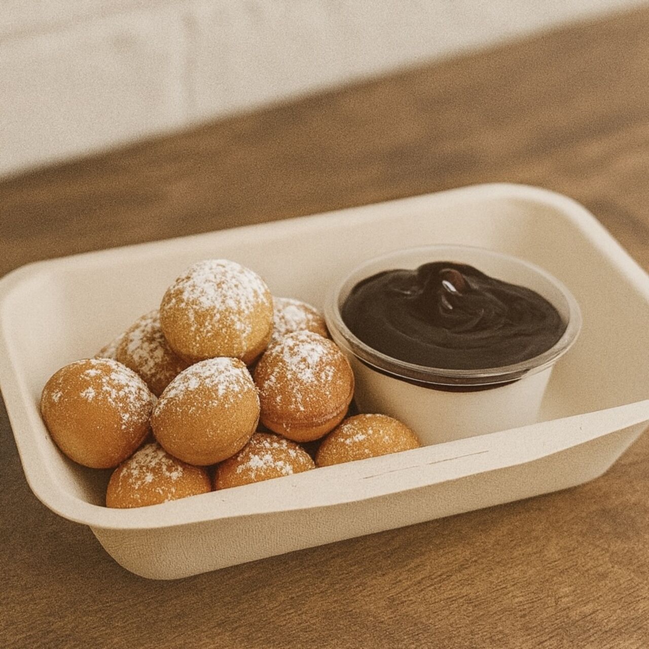 特製生クリーム&チョコソースにディップして食べるオシャレベビーカステラです。